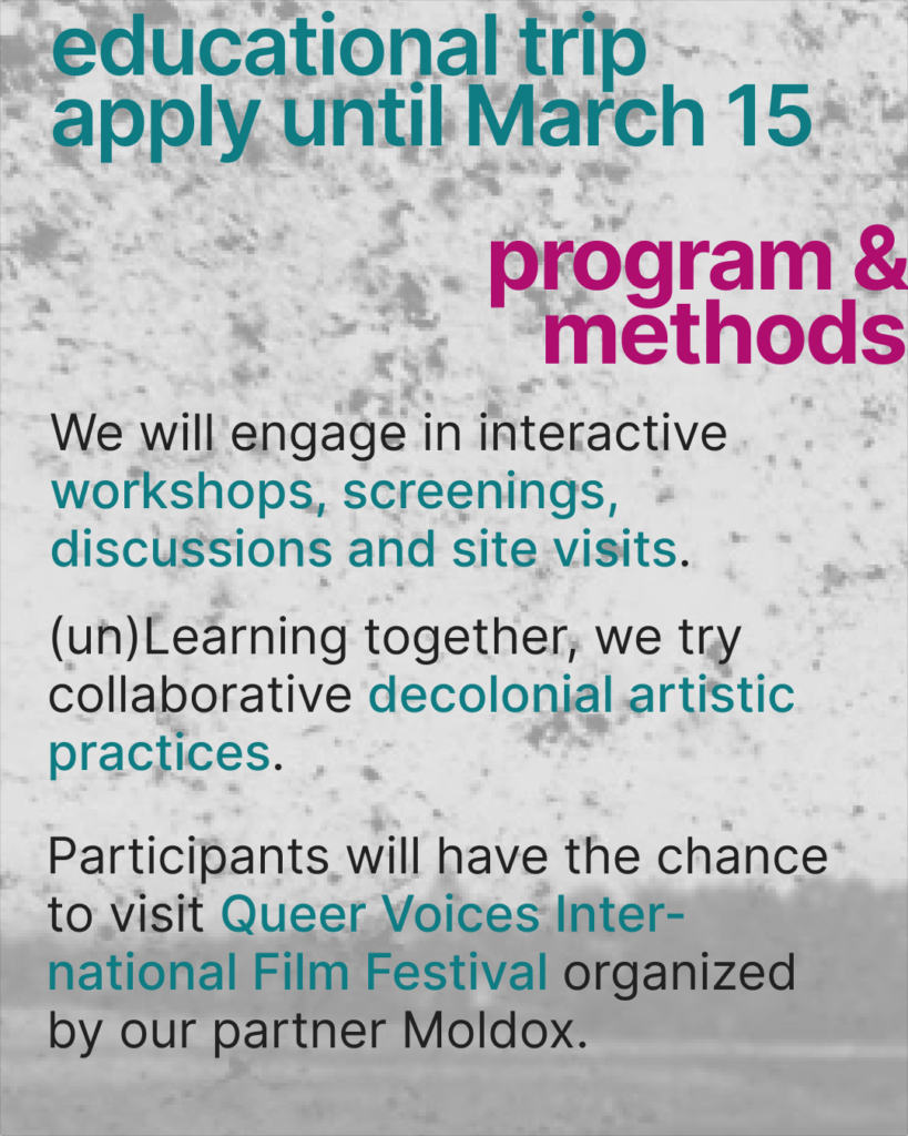 with whom: Queer Cafe (Moldova), Art Platforma (Moldova), Solidarity Collectives (Ukraine), Human Constanta (Belarus), Prismatica (Belarus), Educat Collective (Germany) and Coopera (Germany)
